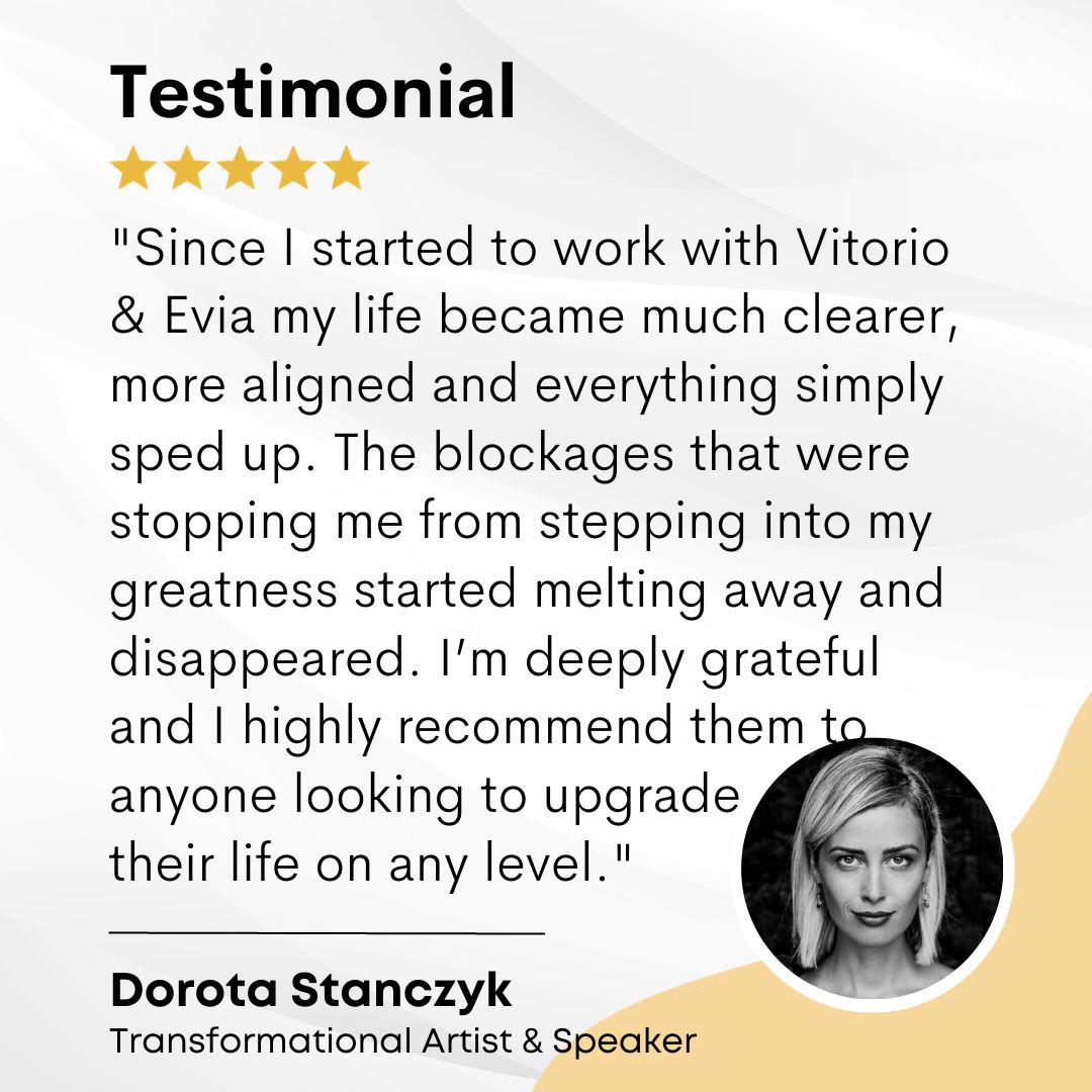 Evia and Vitorio are modern day alchemists and visionaries, dedicated to researching the mechanics of consciousness, human experience and nature of reality. Their goal is taking their clients to a lasting state of inspired flow - The Timeline of Inner Bliss.