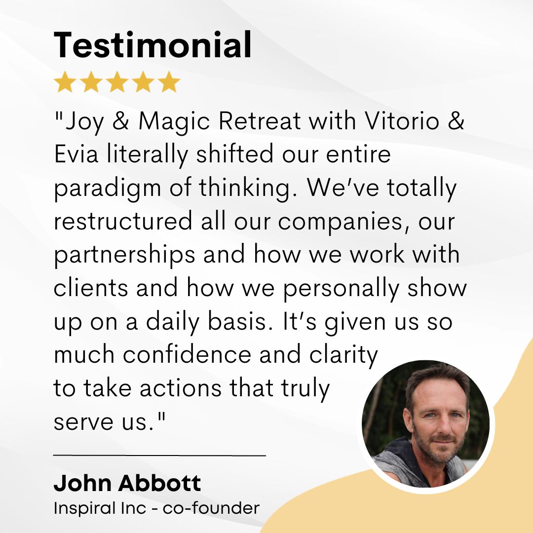 Vitorio uses his "Personal Prosperity Blueprint" and "Company Energetic Re-Alignment" systems to support business leaders in harmonizing key player teams and re-align business strategy with New Paradigm and deeper Inner Purpose.